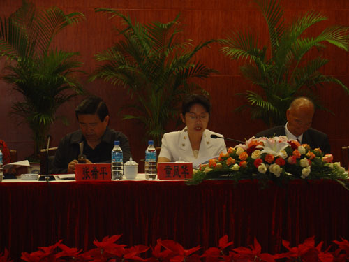 云南省委統(tǒng)戰(zhàn)部副部長(zhǎng)童鳳華(中)在理事會(huì)上講話