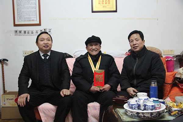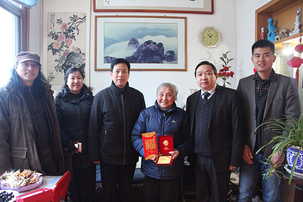1月29日,江西省黃埔軍校同學會秘書長萬堅,省黃埔親友聯誼會會長周亮、副會長秦洪淵和同學會機關工作人員攜帶慰問物資和慰問金,拜望了省黃埔軍校同學會常務副會長趙昌然。萬堅詳細詢問了趙老的健康狀況,向他匯報了一年來同學會的主要工作和未來一段時間的工作設想。趙老聽后,頻頻豎起大拇指表示肯定和贊賞。由于身體原因,語言能力受到影響,但他卻仍然一字一字地說道:“共產黨團結我們一起,好啊!”