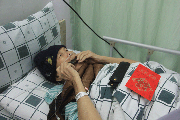 百歲黃埔老人梁漢周在病床上吹奏《秋水伊人》