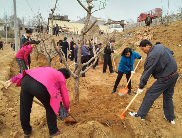 3月19日,河北省黃埔軍校同學(xué)會機(jī)關(guān)干部在秘書長劉禮梅帶領(lǐng)下,參加了省委統(tǒng)戰(zhàn)部組織的統(tǒng)戰(zhàn)系統(tǒng)干部到中央統(tǒng)戰(zhàn)部舊址平山縣李家莊的義務(wù)植樹活動。植樹活動結(jié)束,大家在省委統(tǒng)戰(zhàn)部駐村扶貧干部的引領(lǐng)下,聽取了李家莊美麗鄉(xiāng)村建設(shè)的規(guī)劃介紹,參觀了經(jīng)過改造后的村容村貌和正在施工建設(shè)的中央統(tǒng)戰(zhàn)部舊址擴(kuò)建廣場。
