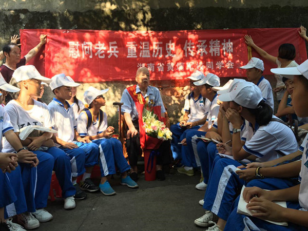 9月3日,在中國抗日戰爭勝利紀念日暨世界反法西斯戰爭勝利71周年之際,為繼承和發揚以愛國革命為核心的黃埔精神,湖南省黃埔軍校同學會組織長沙雅禮實驗中學二十名中學生開展“慰問老兵,重溫歷史,傳承精神”為主題的教育活動。