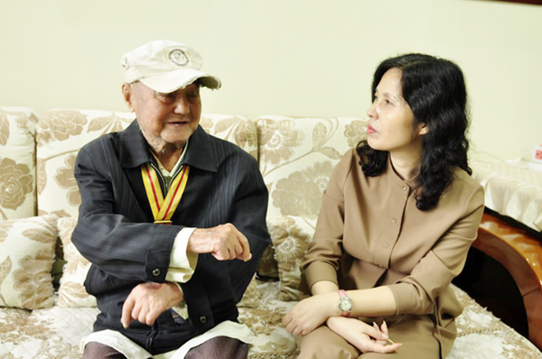 在看望黃埔抗戰(zhàn)老兵夏禹聲的過(guò)程中,夏老回憶起抗戰(zhàn)的經(jīng)歷,激動(dòng)不已。他說(shuō):“我不是什么英雄,就是一個(gè)黃埔軍校畢業(yè)的普通軍人。但是,我對(duì)自己就讀黃埔軍校、參加抗戰(zhàn)、見(jiàn)證‘跨國(guó)受降’,感到無(wú)比的光榮。現(xiàn)在,保重身體、不給組織添麻煩,就是我最大貢獻(xiàn)。感謝組織的關(guān)心和關(guān)愛(ài)!”