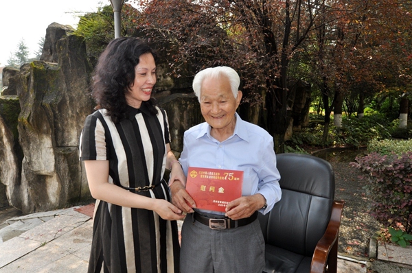 在中國(guó)人民抗日戰(zhàn)爭(zhēng)暨世界反法西斯戰(zhàn)爭(zhēng)勝利75周年之際,為了大力弘揚(yáng)抗戰(zhàn)精神,加強(qiáng)愛(ài)國(guó)主義教育、弘揚(yáng)和培育民族精神,貴州省黃埔軍校同學(xué)會(huì)制定了《關(guān)于開(kāi)展紀(jì)念中國(guó)人民抗日戰(zhàn)爭(zhēng)暨世界反法西斯戰(zhàn)爭(zhēng)勝利75周年系列活動(dòng)方案》,對(duì)開(kāi)展紀(jì)念抗戰(zhàn)勝利75周年慰問(wèn)黃埔抗戰(zhàn)老兵專(zhuān)項(xiàng)活動(dòng)進(jìn)行了安排。8月啟動(dòng)該項(xiàng)工作以來(lái),貴州省黃埔軍校同學(xué)會(huì)機(jī)關(guān)先后看望慰問(wèn)了吳弘毅、楊瑞堂、周萬(wàn)政、夏禹聲等參加過(guò)抗戰(zhàn)的貴州健在黃埔會(huì)員,將黨和政府對(duì)黃埔抗戰(zhàn)老兵的關(guān)心和祝福送給他們。