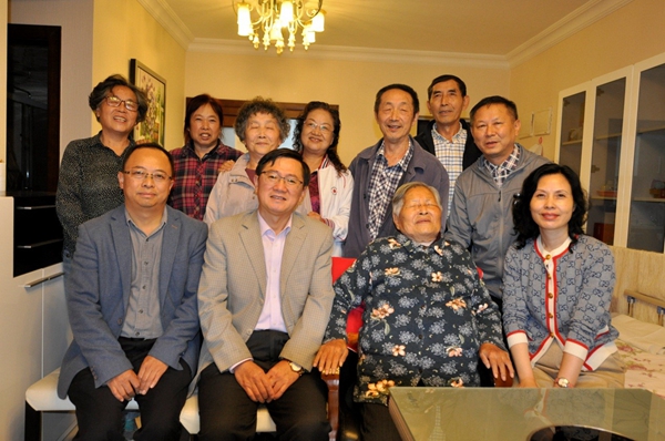 王茂愛(左二)走訪慰問抗戰(zhàn)將領(lǐng)遺孀陸素影(右二,102歲)并與家屬交流