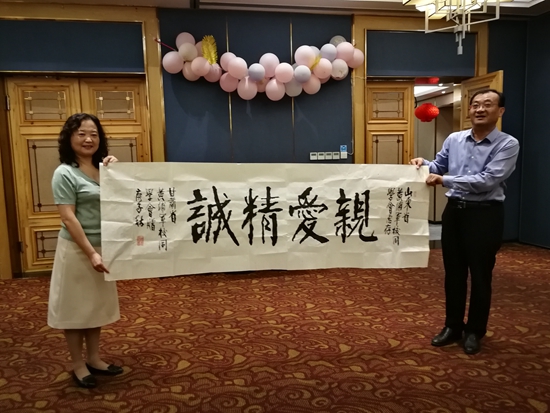 姚惠珍向郭廣勇(右)贈送書法作品