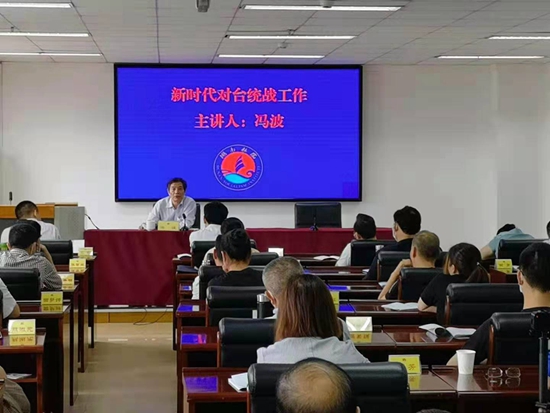 隨后,馮波結合當前國際國內形勢和對臺方針政策、結合目前黃埔組織現狀和工作情況,就關愛黃埔老人,搶救性收集黃埔同學口述故事和收集保護黃埔歷史文物,廣泛聯系黃埔親屬后代,加強黃埔親屬代表人士隊伍建設等方面作了“新時代對臺統戰工作”的專題講座。