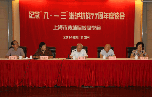 8月12日,上海市黃埔軍校同學會召開紀念“八·一三”淞滬抗戰77周年座談會。市黃埔軍校同學會副會長朱純、呂力,市黃埔軍校同學會親屬聯誼會名譽主委劉豫陽、主委楊逢珉出席會議。副會長朱純在講話中表示,大力弘揚偉大的抗戰精神,不斷增強團結一心、自強不息的精神動力,朝著中華民族偉大復興的中國夢前進,不斷以堅持和發展中國特色社會主義的新成就告慰抗日英烈。
