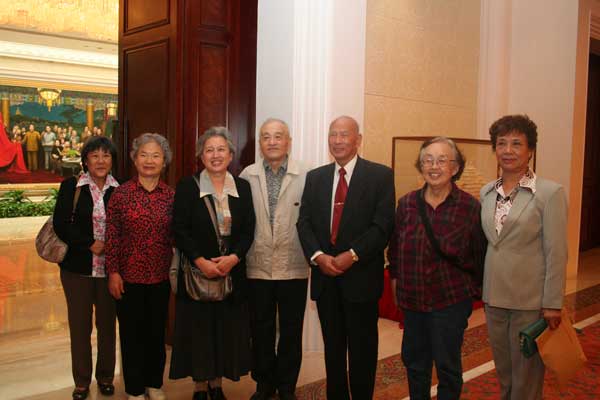 左起黃維之女黃慧南、李默庵之女李碧茹、黃雍之女黃勝利、杜伯園理事、林上元會長、左權之女左太北、林會長夫人李艷