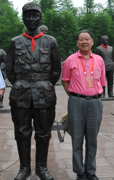徐小巖(右二)在父親徐向前雕塑前與樊建川(右一)合影