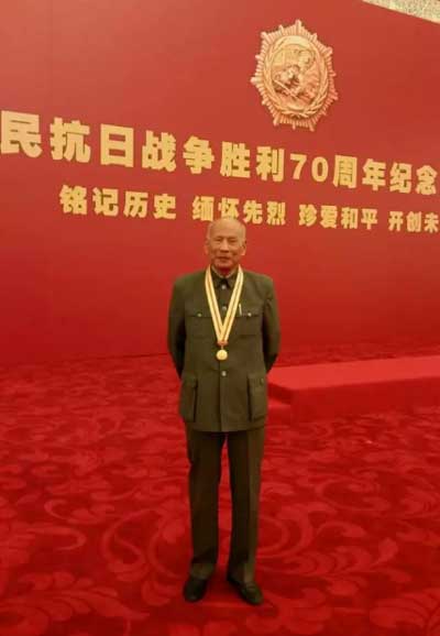 習近平為林上元等30名代表頒發(fā)中國人民抗日戰(zhàn)爭勝利70周年紀念章