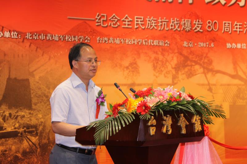 6月6日,由北京市黃埔軍校同學(xué)會和臺灣黃埔后代聯(lián)誼會聯(lián)合舉辦的“弘揚抗戰(zhàn)精神 致力振興中華——紀(jì)念全民族抗戰(zhàn)爆發(fā)80周年海峽兩岸書畫展”在北京臺灣會館舉行,黃埔軍校同學(xué)會副秘書長馮記林應(yīng)邀出席開幕式并致辭。