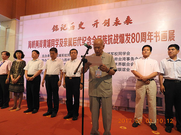 8月1日,黃埔軍校同學會與山西省黃埔軍校同學會聯合舉辦的“銘記歷史,開創未來”書畫展在山西美術館開幕。林上元會長出席并致辭,他說,在艱苦卓絕的抗日戰爭中,30萬黃埔師生流血犧牲,英勇奮斗,為國家的獨立和解放作出了很大貢獻。此次以書畫展的形式追憶那段歷史,緬懷英烈,就是要將高昂的愛國熱情和偉大的民族精神,轉化為矢志不渝、奮發圖強的實際行動,為實現中華民族偉大復興的中國夢而努力奮斗。