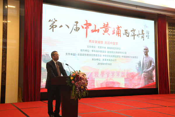 9月16日,民革中央和黃埔軍校同學會共同主辦的第八屆“中山·黃埔·兩岸情”論壇在北京隆重舉行。論壇以高舉孫中山先生偉大旗幟、發揚黃埔精神為主線,以“兩岸黃埔情·共圓中國夢”為主題,倡導海內外黃埔同學及親友共同為實現祖國統一和中華民族偉大復興努力奮斗。全國政協港澳臺僑委員會、中華海外聯誼會、國務院臺辦、民革中央、黃埔軍校同學會、中國戰略文化促進會、中國文化發展促進會等有關方面的領導,臺灣退役將領代表、港澳海外和內地知名黃埔親屬代表、知名專家學者等近160余人出席論壇。全國政協副主席、民革中央常務副主席鄭建邦,中華海外聯誼會副會長戴均良、國務院臺辦副主任龍明彪、黃埔軍校同學會會長林上元以及臺灣新同盟會原會長許歷農、臺灣新黨主席郁慕明、聶榮臻元帥外孫女聶菲、香港大中華會主席胡葆琳先后在開幕式上致辭。