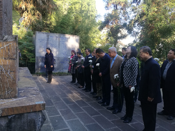 捐贈儀式前,與會嘉賓瞻仰了“國殤墓園”,郝一峰副秘書長代表黃埔軍校同學會向抗戰英烈敬獻花圈。