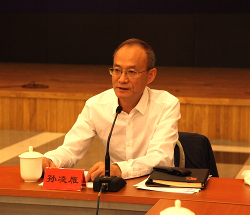 中國和平統一促進會執行副秘書長、黃埔軍校同學會秘書長孫凌雁主持座談會。