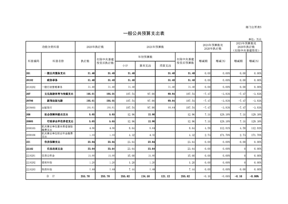 《黃埔》雜志社2021年一般公共預(yù)算當(dāng)年撥款255.62萬元,比2020年執(zhí)行數(shù)減少0.16萬元。主要原因是:按照黨中央、國務(wù)院關(guān)于過緊日子的要求,厲行節(jié)約辦一切事業(yè),壓減一般性支出。