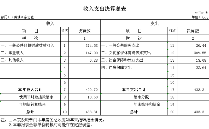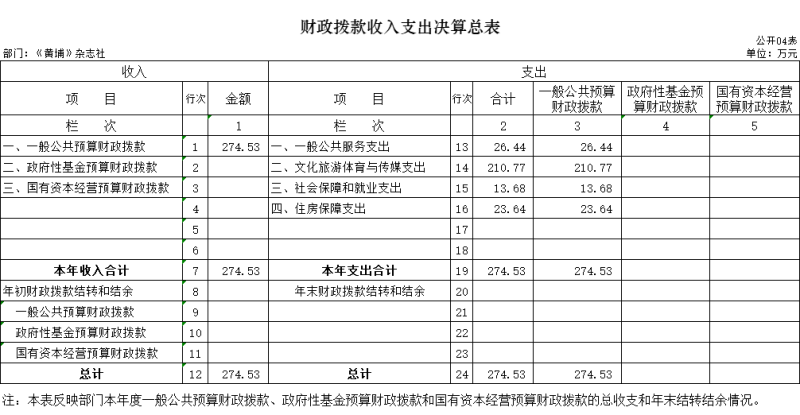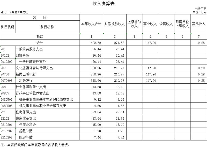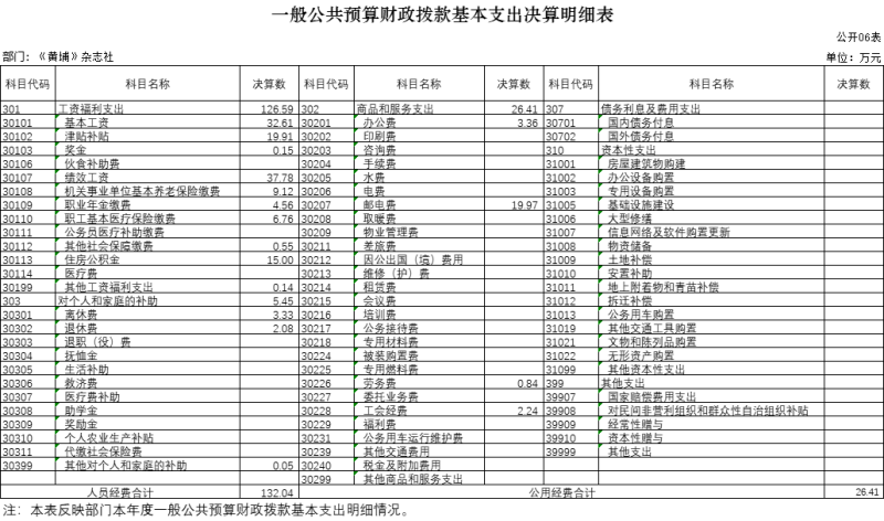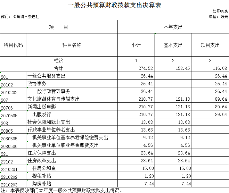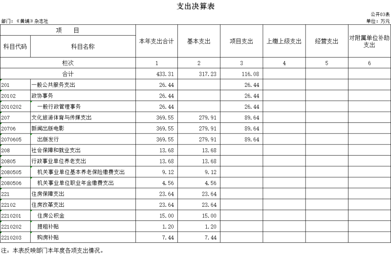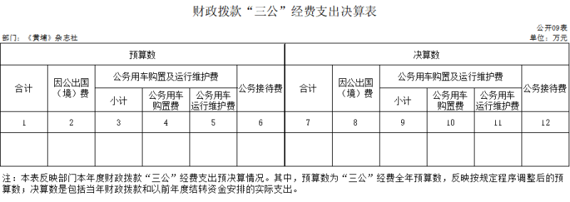 十、文化旅游體育與傳媒支出(類)新聞出版電影(款)出版發行(項):指《黃埔》雜志社事業運行人員經費、公用經費、《黃埔》雜志改版經費補貼項目、向臺灣及海外贈閱雜志政策性補貼項目的支出。