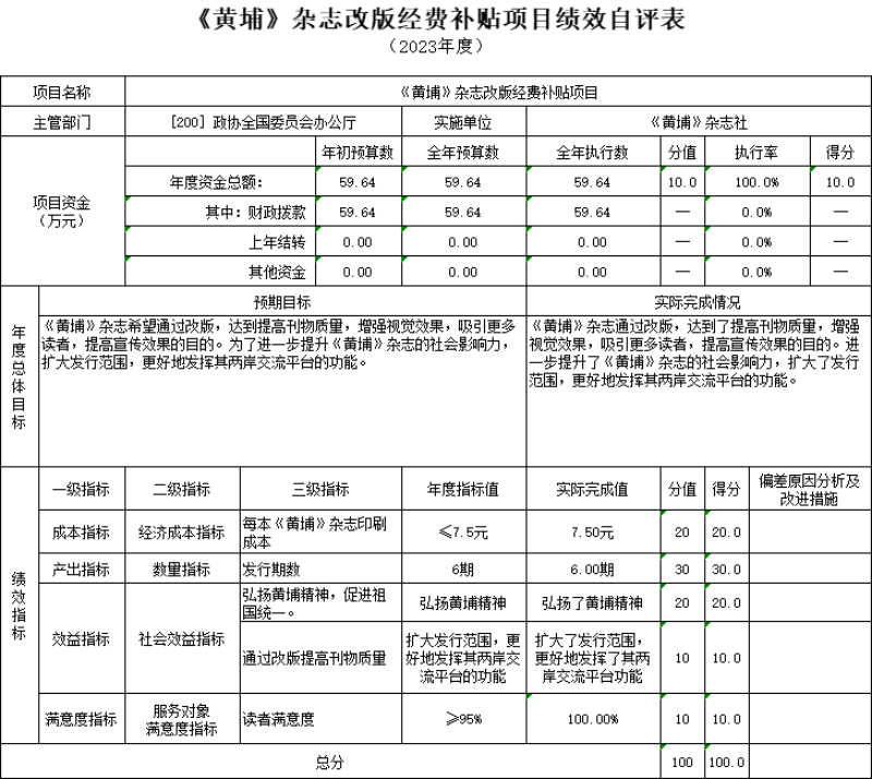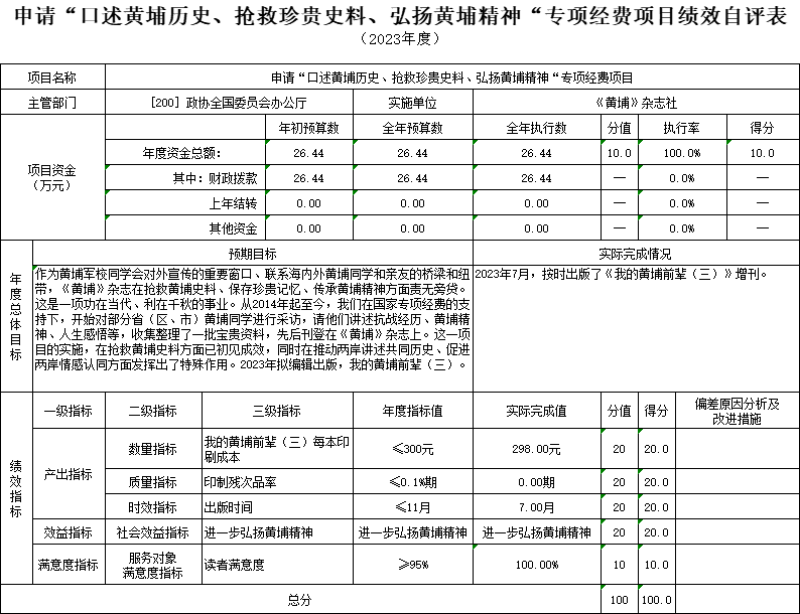 根據預算績效管理要求,《黃埔》雜志社組織對2023年度一般公共預算項目支出全面開展績效自評。其中二級項目3個,共涉及資金116.08萬元,占一般公共預算項目支出總額的100%。