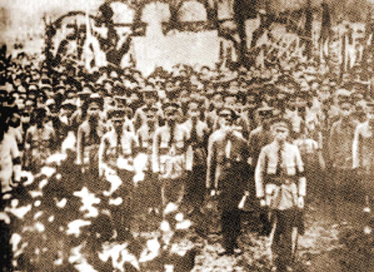 1925年3月30日,東征軍集會(huì)追悼孫中山,總指揮蔣介石主持大會(huì),總政治部主任周恩來(lái)(持文稿者)宣讀祭文。