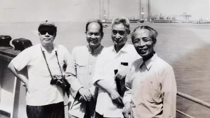 圖為1984年黃埔軍校同學參加考察活動,右一至右三依次是:鄭心楠父親鄭庭笈、黃慧南父親黃維、覃珊父親覃異之。(受訪者供圖)