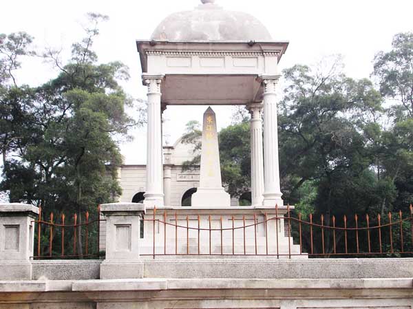 在烈士墓右前方,珠江岸邊,于1928年到1937年陸續建立了紀念牌坊和登山墓道。登山墓道有幾條,目前留有主墓道。主墓道用麻條石鋪成,直抵陵墓祭臺,墓道兩側栽種樹木,并建兩座琉璃瓦涼亭,供游人遠眺小憩。維修后的墓園布局更趨均衡,幽靜、肅穆的氛圍得到更好體現。