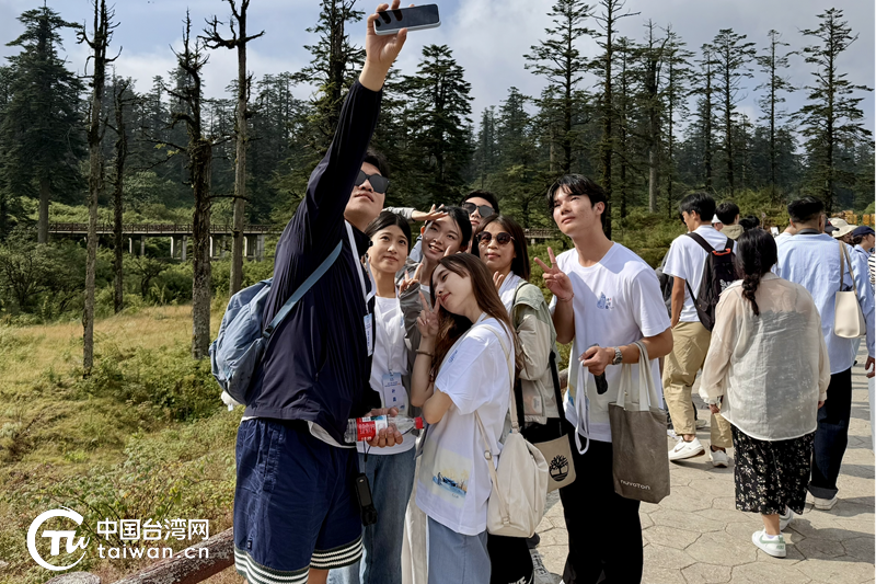兩岸青年學(xué)子在眉山之行中建立起深厚友誼,于瓦屋山登頂后合影留念。(中國臺灣網(wǎng)記者 郁誠 攝)
