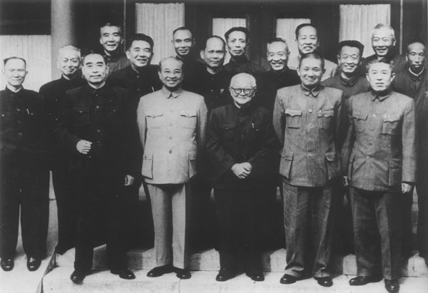 1960年10月19日,周恩來同志在北京頤和園親切會見當(dāng)年的黃埔校友。前排左起:李奇中、周恩來、陳賡、邵力子、張治中、鄭洞國。中排左起:黃雍、唐生明、覃異之、侯鏡如、杜聿明、周振強。后排左起:王耀武、楊伯濤、鄭庭笈、周嘉彬、宋希濂