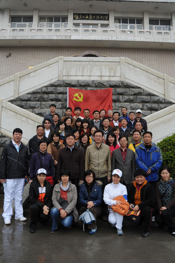 4月22日,黃埔軍校同學會組織機關干部赴狼牙山進行愛國主義教育。同志們參觀了狼牙山五勇士陳列館,向狼牙山五勇士雕像敬獻了花籃。