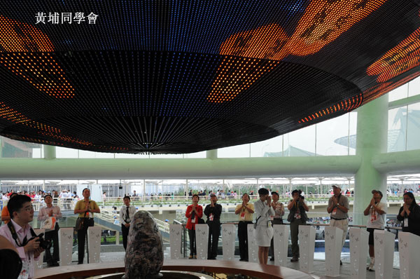 當日,兩岸退役將軍興致勃勃地參觀了上海世博會的中國館、臺灣館和主題館。在參觀以“山水心燈”為主題的臺灣館時,兩岸將軍在點燈臺前點亮了一盞“心燈”。一時間,祈福“國泰民安”、“愛與和平”的一盞盞“心燈”,在臺灣館的LED球形屏幕上冉冉升起。黃幸強上將為臺灣館寫了題詞,名為“臺灣之光”。兩岸退役將軍還乘車游覽了浦東浦西整個世博會大小館區。