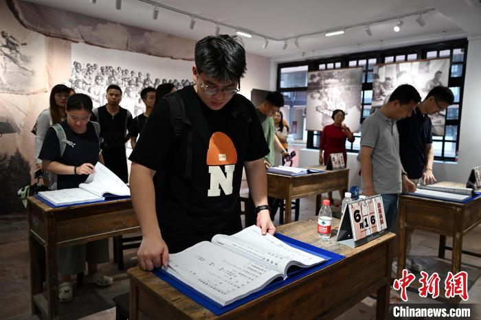 6月16日,廣州市黃埔區,黃埔軍校舊址紀念館重新開館。其中,全新策劃布展的“國共合作的不朽豐碑——大革命中的黃埔軍校(1924-1927)”校史展,通過300余張歷史圖片,以“歷史實物+多媒體還原”的形式,呈現了國共合作時期的黃埔軍校歷史,展出170件套展品,除館藏的82件套外,其余均為來自全國20個單位、黃埔后人及藏家的藏品?!包S埔同學錄查詢室”數據庫正式上線,現已收錄的黃埔軍校學員資料超過17萬人,支持以姓名、籍貫等各種方式模糊查詢。圖為參觀者在“黃埔同學錄查詢室”翻閱黃埔軍校學員資料。中新社記者 陳楚紅 攝