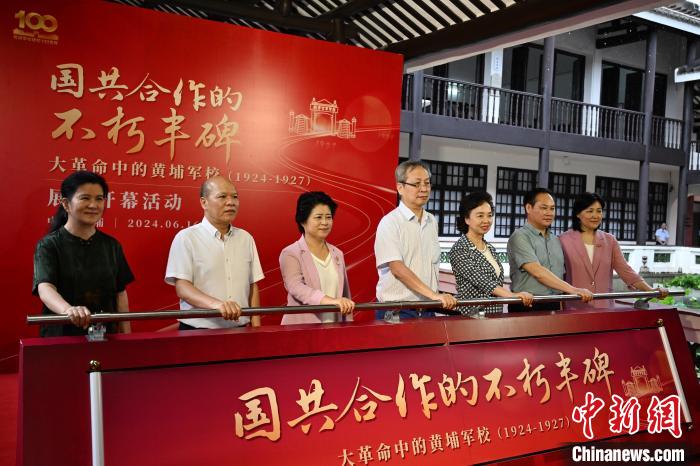 6月16日,廣州市黃埔區,黃埔軍校舊址紀念館重新開館。其中,全新策劃布展的“國共合作的不朽豐碑——大革命中的黃埔軍校(1924-1927)”校史展,通過300余張歷史圖片,以“歷史實物+多媒體還原”的形式,呈現了國共合作時期的黃埔軍校歷史,展出170件套展品,除館藏的82件套外,其余均為來自全國20個單位、黃埔后人及藏家的藏品?!包S埔同學錄查詢室”數據庫正式上線,現已收錄的黃埔軍校學員資料超過17萬人,支持以姓名、籍貫等各種方式模糊查詢。圖為校史展開展儀式。中新社記者 陳楚紅 攝