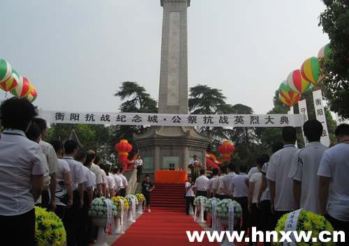 中新網衡陽8月8日電(劉源西)勿忘國恥,振興中華。8日上午,湖南衡陽市在衡陽保衛戰標志性建筑“衡陽抗戰紀念城”前舉行公祭抗日英烈大典,紀念抗戰勝利65周年和祭奠66年前在衡陽保衛戰中英勇獻身的民族英烈。來自海鮮兩岸的各界人士和當年參加過衡陽保衛戰的老戰士代表近300人參加了公祭大典。