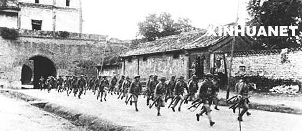 圖為駐守北平宛平城的中國軍隊奔赴盧溝橋抵抗日軍。