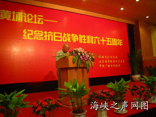 海峽之聲網(wǎng)訊,(圖、文:龔天寧)今日上午9點,《黃埔論壇——紀(jì)念抗日戰(zhàn)爭勝利65周年》在南京開幕,兩岸和海外黃埔同學(xué)及其家屬、退役將領(lǐng)、專家學(xué)者等100多人共聚一堂,圍繞“黃埔精神”、“抗日戰(zhàn)爭勝利65周年”、“兩岸的共同安全”等主題發(fā)表演講、互相交流。這次的黃埔論壇由黃埔軍校同學(xué)會、江蘇省黃埔同學(xué)會、中國廣播電視協(xié)會主辦,其中一大看點是多位臺軍退役高級將領(lǐng)參加此次論壇,包括臺灣原陸軍總司令陳廷寵上將、臺灣“陸軍軍官學(xué)校”校友會會長寧攸武中將、臺灣原南警部司令劉繼正中將、臺灣原陸軍學(xué)院院長胡筑生中將等,另外,曾任臺軍最高領(lǐng)導(dǎo)人的陳履安先生(陳誠將軍之子)也參與了此次論壇。上午的論壇活動結(jié)束后,下午,與會代表們將參觀侵華日軍南京大屠殺遇難同胞紀(jì)念館,敬獻(xiàn)花圈。