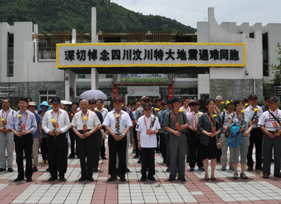兩岸黃埔人映秀獻花悼念地震遇難者
