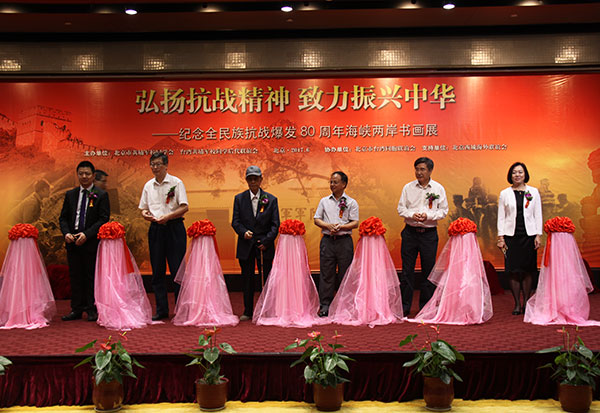 6月6日,由北京市黃埔軍校同學會和臺灣黃埔后代聯誼會聯合舉辦的“弘揚抗戰精神 致力振興中華——紀念全民族抗戰爆發80周年海峽兩岸書畫展”在北京臺灣會館舉行,黃埔軍校同學會副秘書長馮記林應邀出席開幕式并致辭。