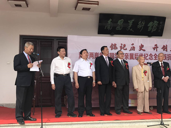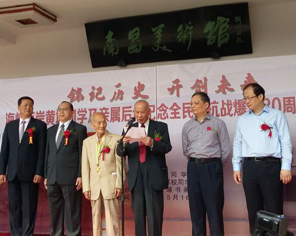 5月16日,海峽兩岸黃埔同學及親屬后代紀念全民族抗戰爆發80周年書畫展在江西南昌書畫院舉行。此次書畫展主題為“銘記歷史,開創未來”,由我會與江西省黃埔軍校同學會聯合舉辦,旨在以書畫為傳媒,弘揚偉大的抗戰精神,促進兩岸文化交流,增進兩岸同胞認同,推動兩岸關系和平發展。