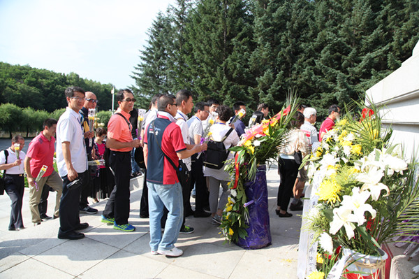 7月8日,參加第十一屆黃埔論壇的近150位嘉賓前往吉林省磐石市紅石砬子抗日根據地遺址、靖宇殉國地等地參觀祭拜。磐石市委宣傳部等部門領導同志陪同參觀磐石市紅石砬子抗日根據地遺址。當了解到磐石赤色游擊隊是黨領導的第一個抗日武裝隊伍并打響了武裝抗日第一槍,抗日戰爭期間磐石共有十萬余人為國捐軀后,嘉賓們滿懷崇敬,眼含熱淚,默默肅立在紀念碑前向烈士致敬。參觀團當天還前往楊靖宇殉國地興行祭拜儀式。