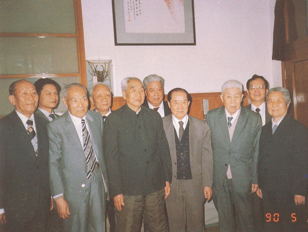 1990年5月10日,黃埔軍校同學(xué)會(huì)名譽(yù)會(huì)長(zhǎng)徐向前元帥在寓所會(huì)見(jiàn)來(lái)自臺(tái)灣的黃埔同學(xué)鄧文儀(前右三)