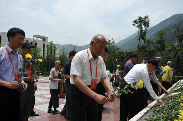 兩岸黃埔人映秀獻(xiàn)花悼念地震遇難者